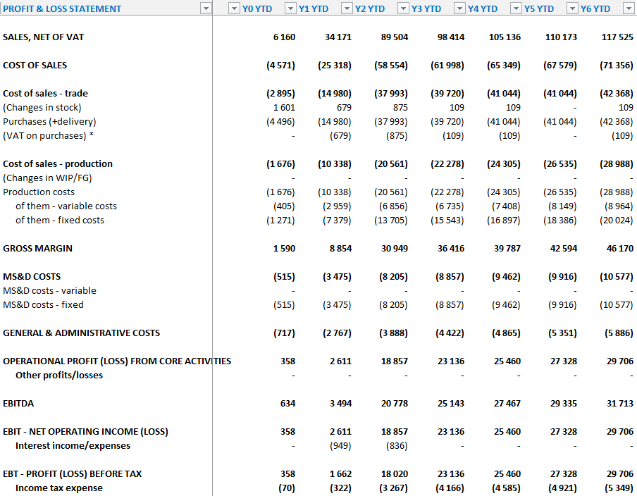 As we elaborated this template for finance trainings – we included additional lines with horizontal and vertical dynamics and ratio analysis for P&L lines.