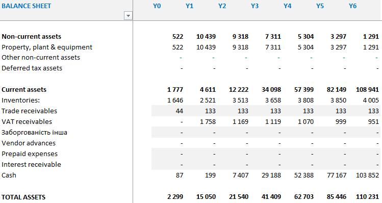 This might be one of the most compact and universal templates ever – it includes only 3 worksheets: Balance Sheet, P&L and Cash Flow. Just itemize what they comprise of, forecast item dynamics, and your forecasts should be finalized automatically.
