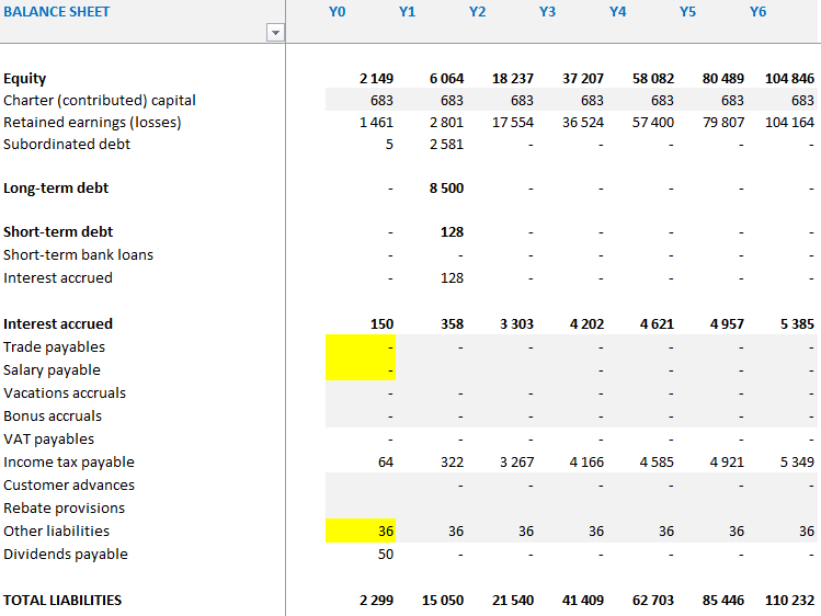 - Automatically balanced without manual intervention: cash excess is treated as free cash, cash deficit – as a subordinate debt (loan from shareholders)