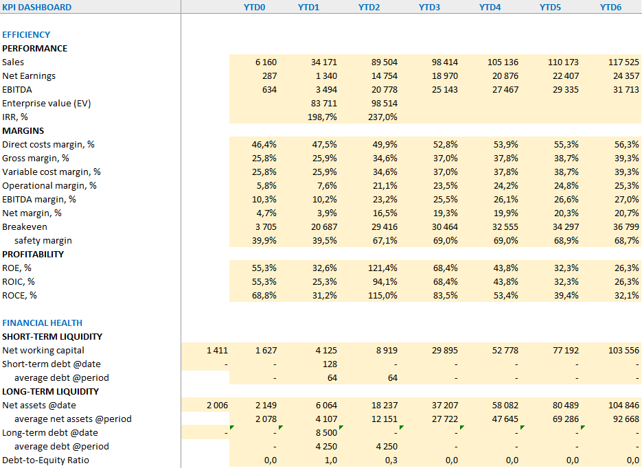 - DCF model at 2 dates (the beginning of the 1st and 2nd year) for dynamics growth and EV KPI monitoring
