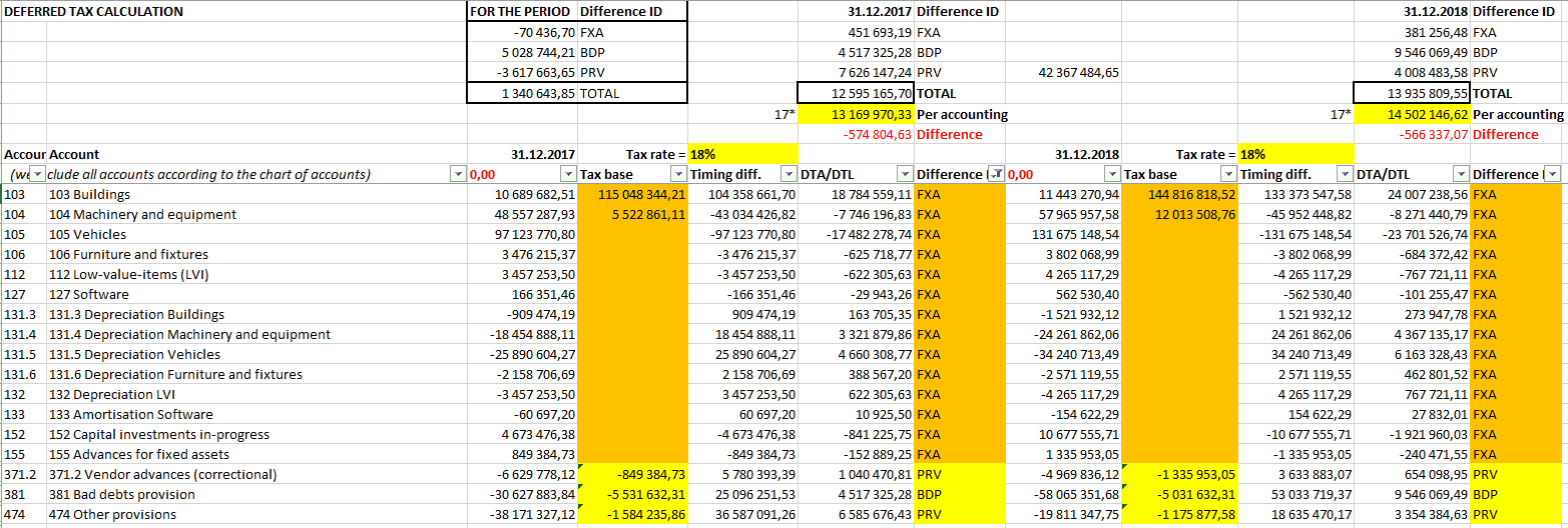 The analysis should include all tax-relevant provision accounts, and there may be quite a lot of them. A company should analyze all the accounts with the purpose whether to the change the approach, and all the exceptions should be covered by the company’s internal accounting policy.
